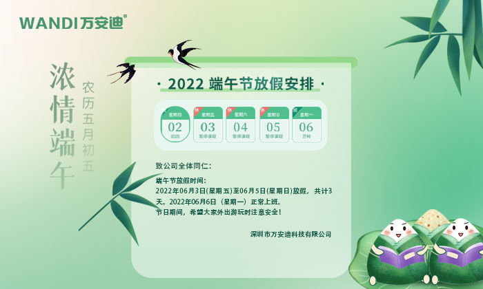 深圳市萬安迪科技有限公司2022年端午節(jié)放假安排: